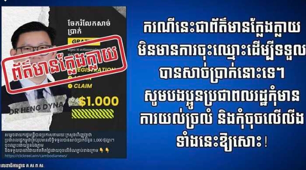 据柬媒消息,近日,一些不法分子在社交媒体转发诈骗链接,谎称点击之后就有机会从洪玛耐首相处获得1000美元的现金。对此,国家信息和公共舆论协调委员会秘书处于16日出面辟谣。国家信息和公共舆论协调委员会秘书处表示,有关点击链接就有机会获得1000美元的传闻为虚假信息,这只是诈骗分子的圈套。为避免上当被骗,请民众不要点击这些链接。国家警察总署警告,如果民众点击这些来源不明的链接,个人信息、社交帐号等将会被不法分子窃取。鉴于网络诈骗案件层出不穷,金边市警察局和宪兵司令部已多次提醒民众在转账或点击不明链接、网站和App之前必须提高警惕。同时,必须警惕陌生人发送的短信,切勿点击、填写个人资料或截屏等。(华人网亮仔整理报道)